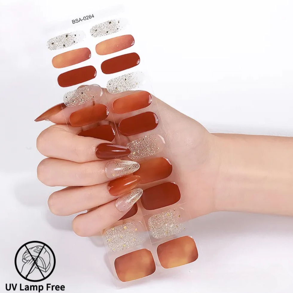 Semi-cured gel nail stickers offer a salon-quality manicure at home. Easy to apply and UV lamp is not required.