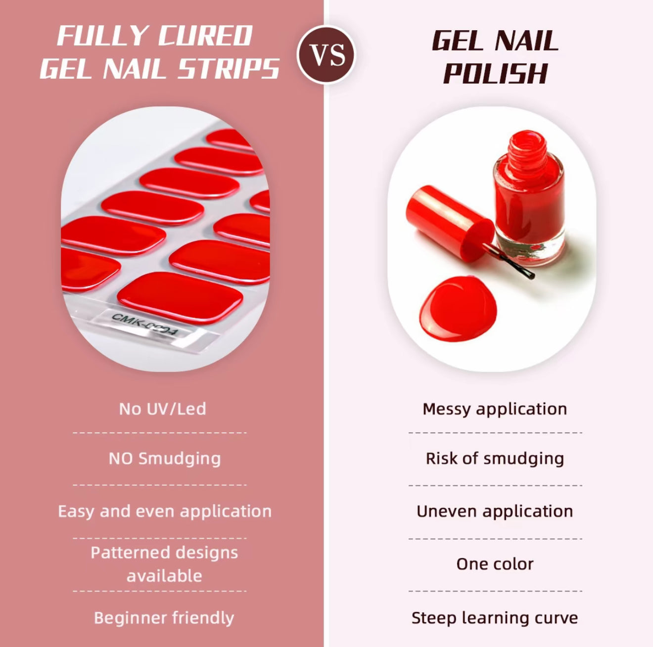 Semi-cured gel nail stickers offer a salon-quality manicure at home. Easy to apply and UV lamp is not required.