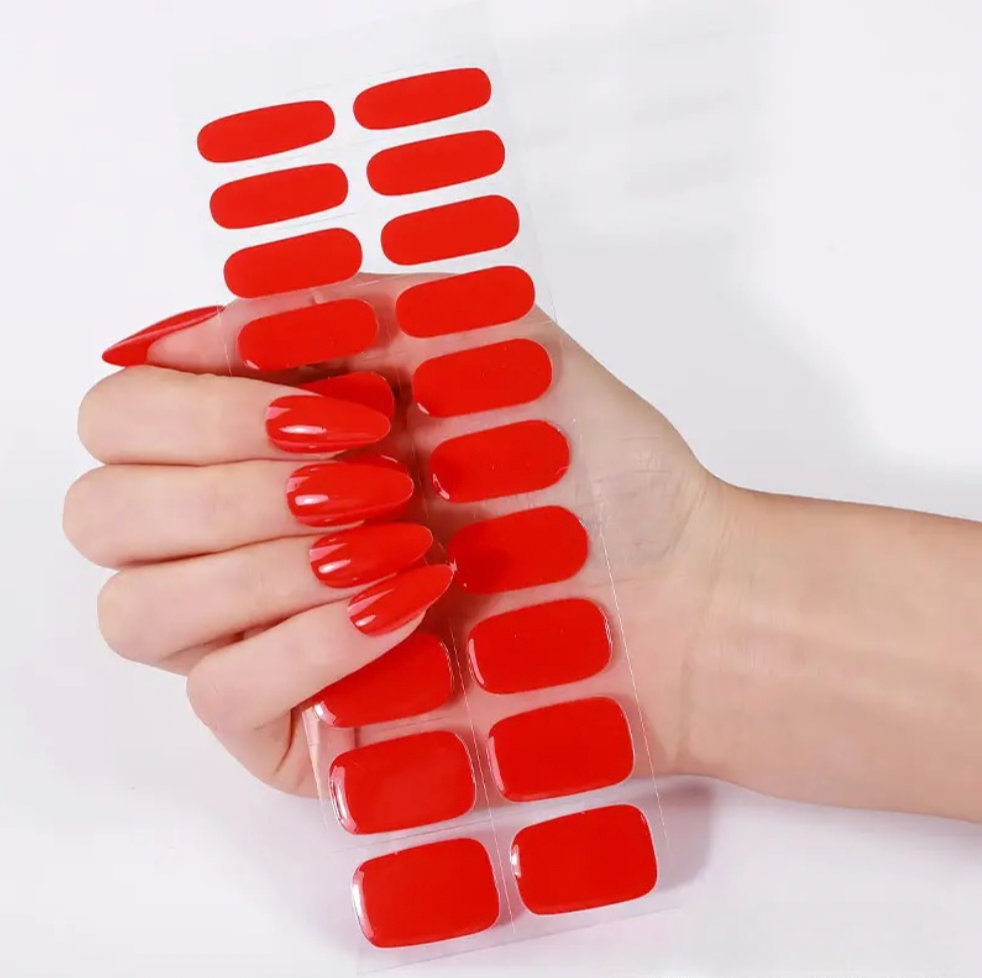 Semi-cured gel nail stickers offer a salon-quality manicure at home. Easy to apply and cured under a UV lamp, they provide a glossy, long-lasting finish with minimal effort.